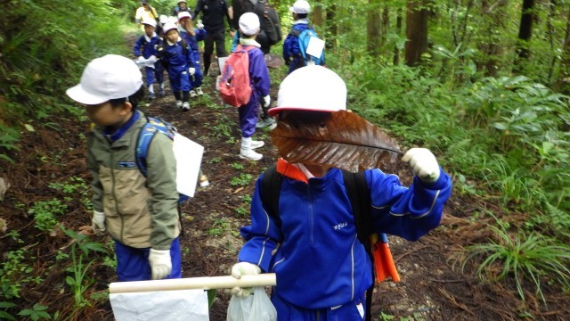 また、途中、ゲストティーチャーの原さんや中島さんに動植物について、たくさん教えていただき、楽しみながら登ることができました。