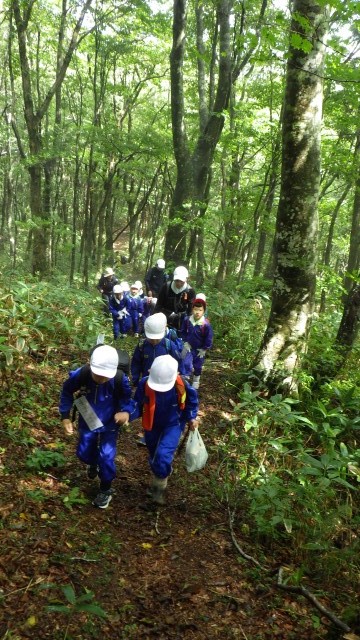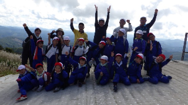 高杉山は、標高約1148mで斜面も急なところが多く、子供達の体力が心配でしたが、1,2年生のなかよしペアで声をかけ合いながら登り続けました。