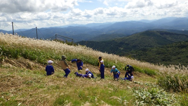 1,2年生がげいほく山ランドで高杉山に登りました。