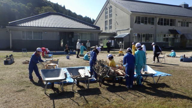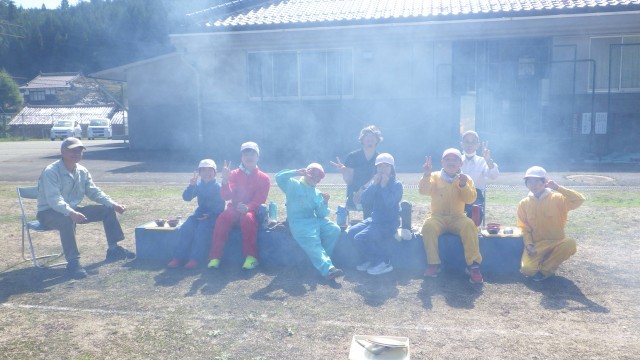 3,4年生が総合的な学習の授業で火おこしをしました。