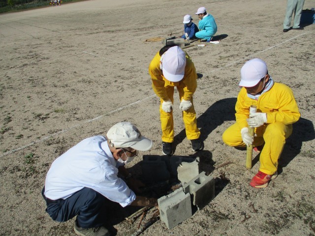 3,4年生のペアになり、4年生は3年生に教えながら火をおこしました。