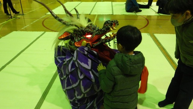 おろちの中に入ったり、大太鼓や小太鼓をたたかせてもらったり。
