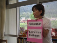 5年生は、夏休みに行った民泊体験活動について発表しました。活動の様子が伝わるよう...
