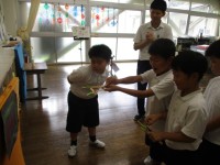 2年生は、生活科で作成したおもちゃをみんなで遊んでみました。他の友達が作ったおも...