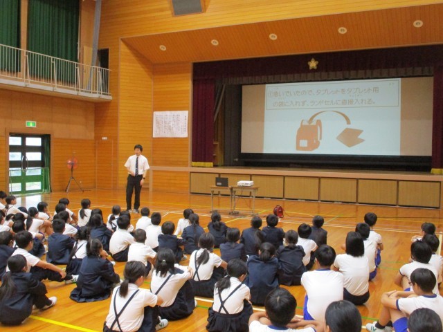 10月8日(水)に情報モラル朝会を行い,タブレットの使い方についてみんなで確認をしました。