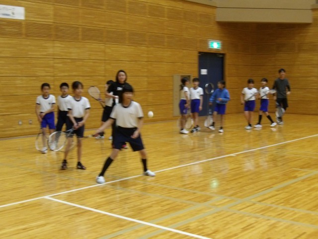 ほとんどの児童が初体験で,最初は空振りしていましたが,どんどん上達していき,ソフトテニスの楽しさを感じていました。