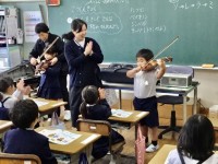 1年生の音楽では、鑑賞曲の学習時に担任の先生が本物のバイオリンを演奏して聴か...