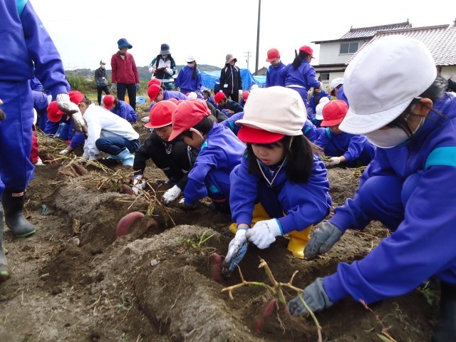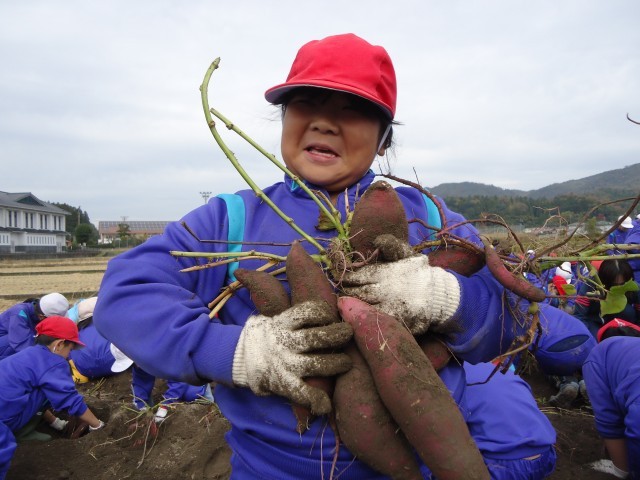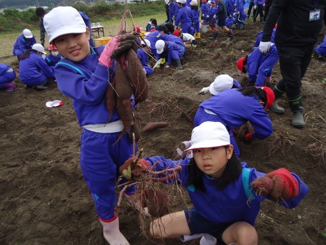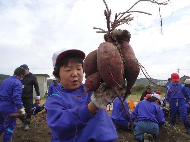 畑には「鳴門金時」と「紅はるか」が立派に育ち、大収穫となりました!子供たちは、芋を傷つけないように丁寧に掘り進め、次々と大きなさつまいもを掘り出しては笑顔を見せていました。お世話してくださったJA農青連の皆様、ありがとうございました。