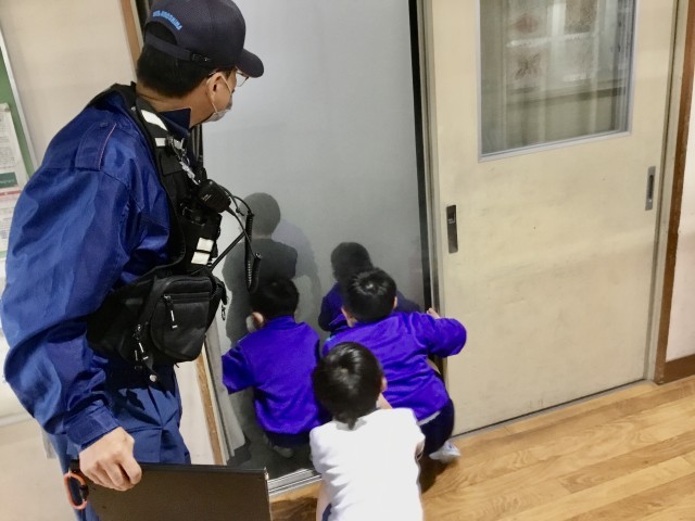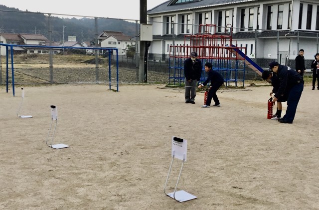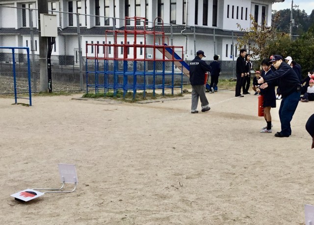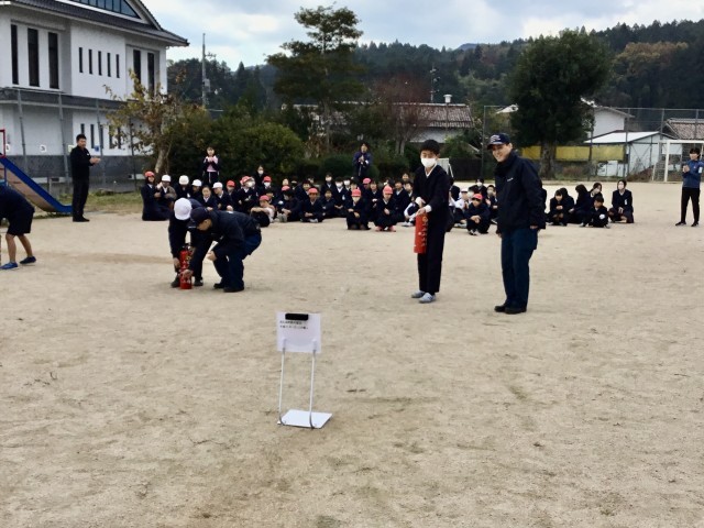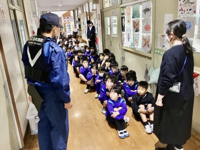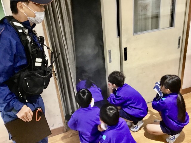 児童は落ち着いて先生の指示を聞き、速やかに避難することができました。高学年は消火器を使った初期消火の訓練、低学年は煙の中を歩く体験を行い、火災時の危険や対処方法について学びました。どの学年も話をよく聞き、積極的に訓練に参加する姿が見られました。