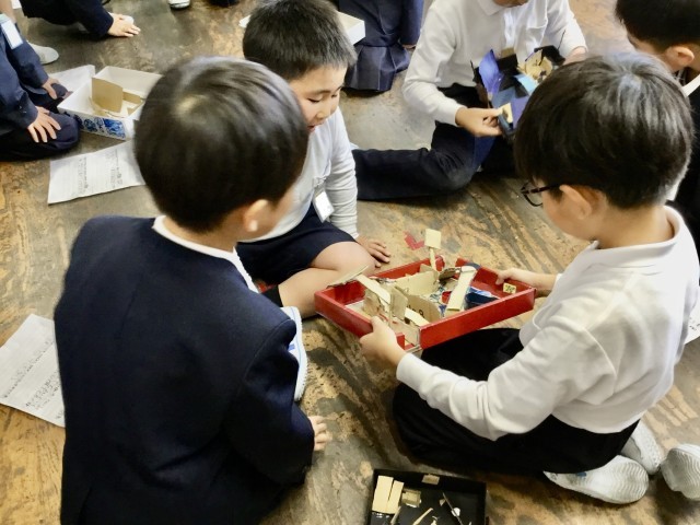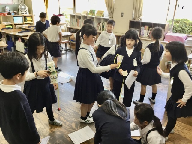 日頃からお世話になっている2年生を招待し、「おもちゃランド」を開催しました。1年生が2年生をはりきっておもてなしをする姿が見られました。招待された2年生も、「楽しい!」「すごいね!」と笑顔いっぱいで、思い思いにおもちゃ遊びを楽しんでいました。