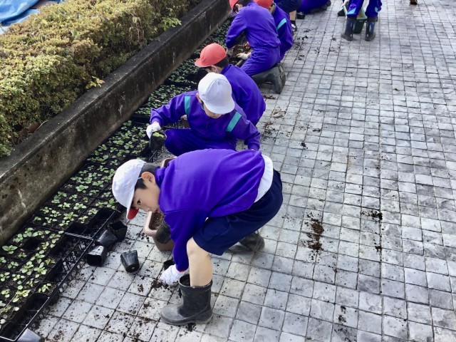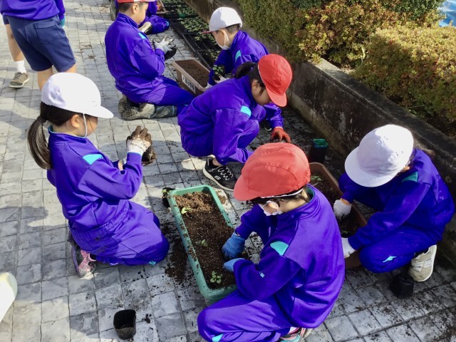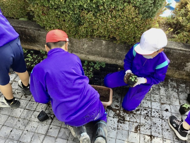 全部で650株の苗を、約130個のプランターに丁寧に植えていきました。土の入ったプランターはとても重く、運ぶのも一苦労でしたが、友達と力を合わせて協力しながら作業を進めました。引き続き、大切にお世話をしていきます。