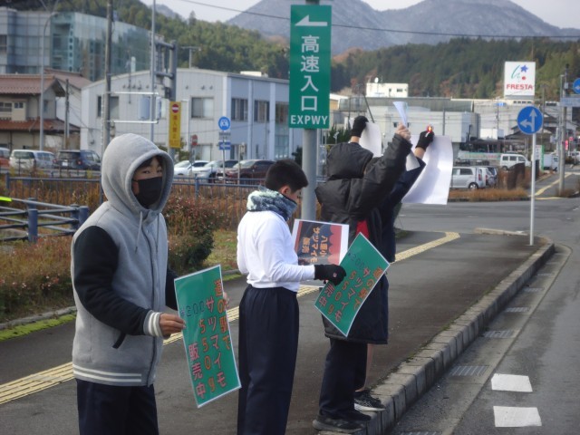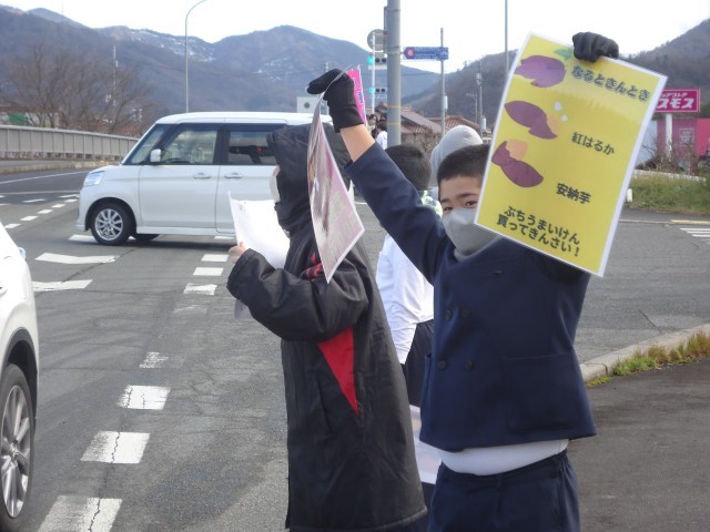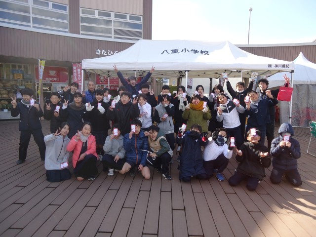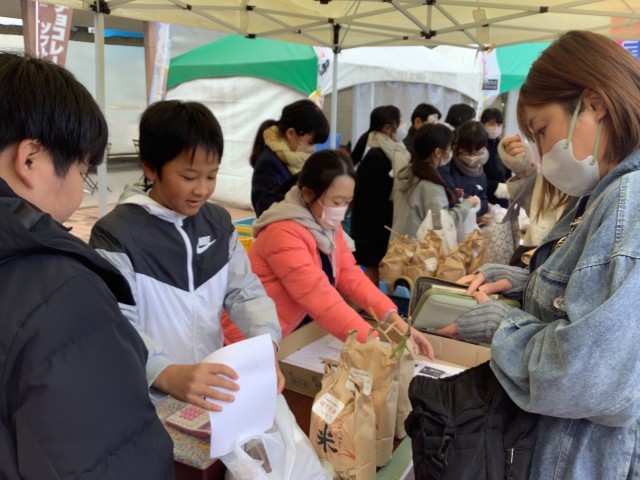 寒さの厳しい中でしたが、子供たちは看板を手に持って元気よく呼び込みをしたり、お客さんへ積極的に声をかけたりと、役割を分担しながら、みんなで力を合わせてがんばりました。その結果!!お米は見事に完売し、さつまいもも過去最多の販売数を記録しました。