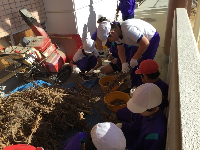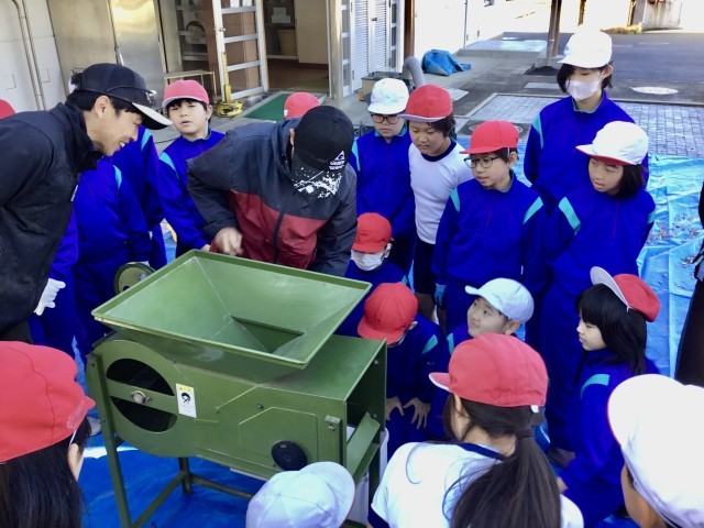 枝からさやを外し、機械にかけて豆を取り出した後、とうみを使って殻やごみを取り除く作業に取り組みました。長時間にわたる作業となりましたが、4年生は声を掛け合いながら協力して最後までやり遂げることができました。