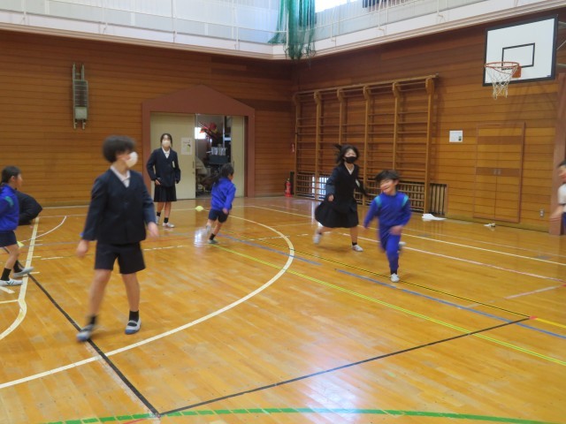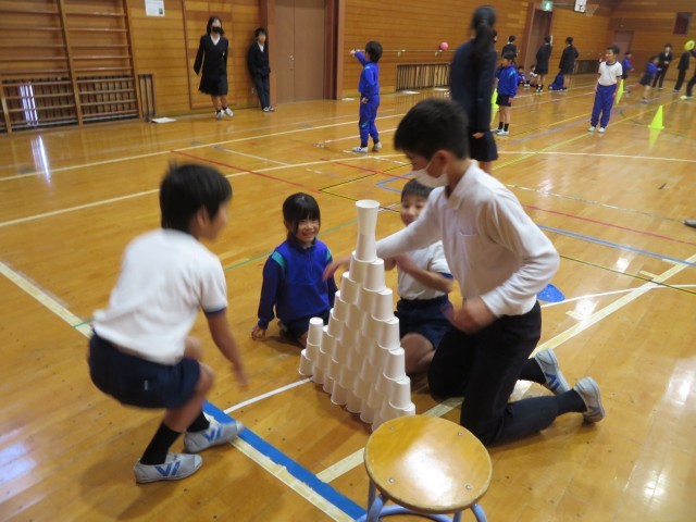 この日のために6年生は、「1年生が楽しめること」を考え、風船バレーやだるまさんがころんだなど、楽しい遊びをたくさん企画しました。活動中は、困っている1年生に優しく声をかける6年生の姿が見られ、最高学年としての頼もしさが感じられました。1年生も笑顔いっぱい楽しい時間を過ごすことができました。