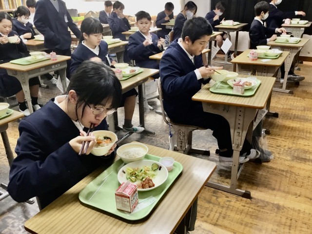 給食の時間には、6年生の放送委員がクリスマスの音楽をバックミュージックに流し、楽しいクリスマスクイズを届けてくれました。2学期のしめくくりにふさわしい、心あたたまる給食のひとときでした。
