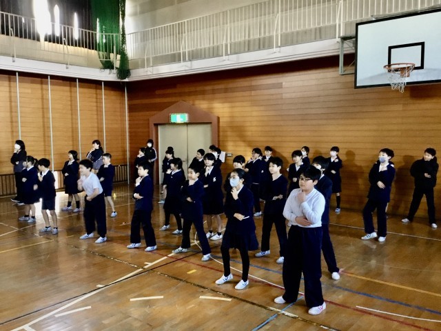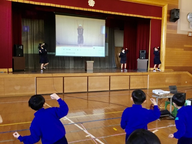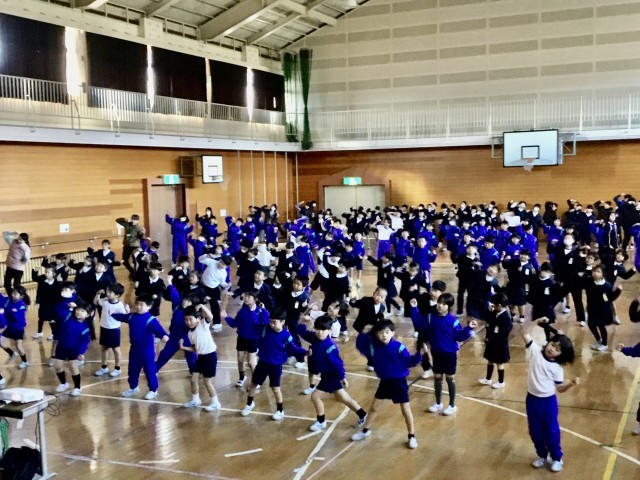 1月21日に行われる「八重小フェスティバル」に向けて、全校ダンスの練習を行っています。6年生のダンスリーダーを中心に、振り付けを確認しながら、みんなで息を合わせて楽しく練習しています。