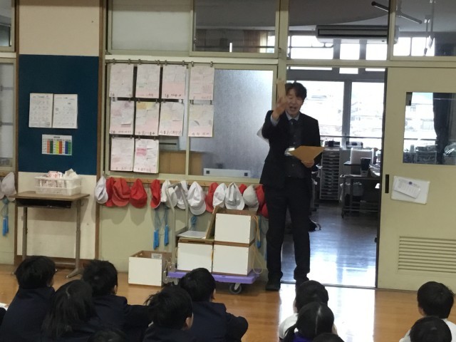 千代田中学校1年生のみなさんから、技術・家庭科の授業で作成した「モルック」を寄贈していただきました。全校朝会で紹介されると、子どもたちは「早く使ってみたい」と、わくわくしていました。