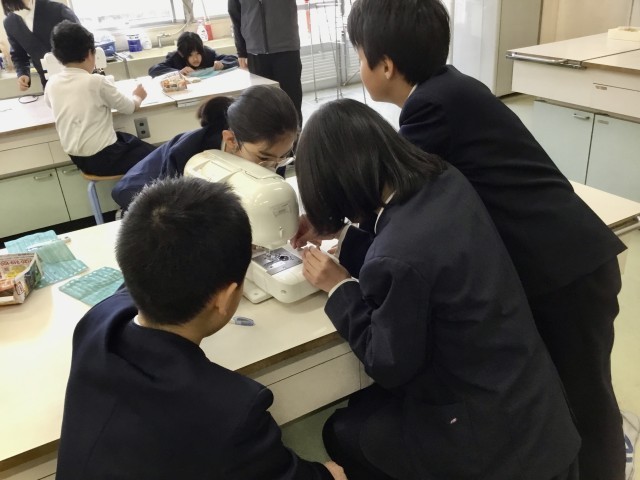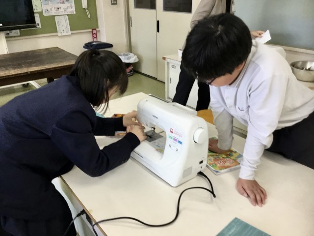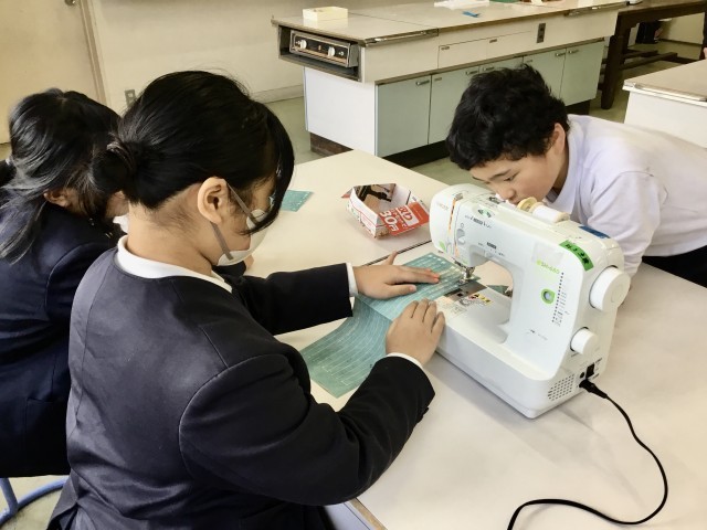 5年生の家庭科では、ミシンを使った学習に取り組んでいます。