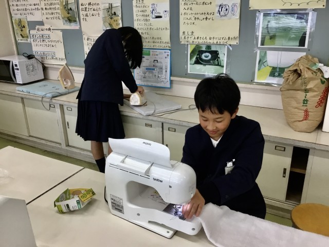 卒業を間近に控えた6年生が、これまでお世話になった八重小学校のために「自分たちにできることは何か」を考え、この日は、雑巾づくりや足ふきマット作り、カーテンのタッセル作り、そして体育館のカーテンの修繕に取り組みました。