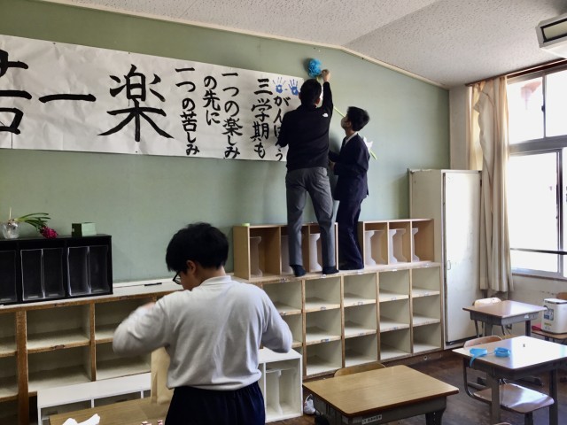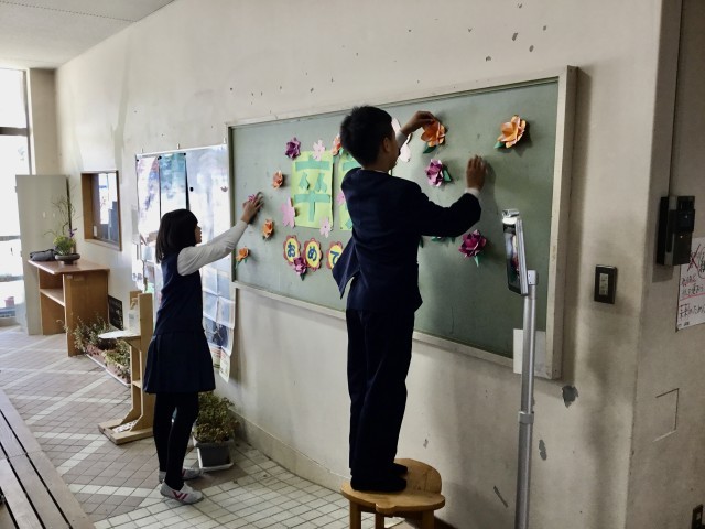 5年生が、校内の清掃や会場の飾りつけに心を込めて取り組み、卒業生への感謝の気持ちを形にしてくれました。明日は、児童一人ひとりが心を込めて臨み、卒業生にとって心に残る、すばらしい式となるよう教職員一同努めてまいります。どうぞよろしくお願いいたします。