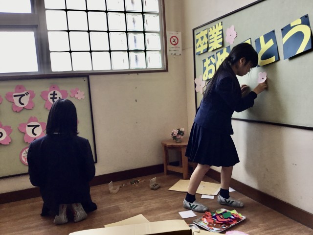 【5年生 卒業式前日準備】