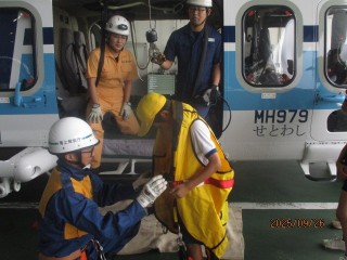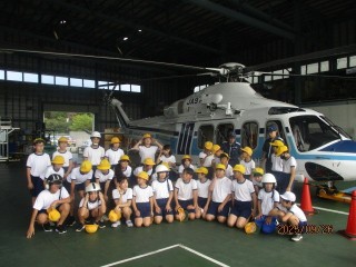5・6年生は、キャリア教育も兼ねて、広島県防災センターで、防災ヘリコプターを見せていただき、吊り上げ救助を体験しました。