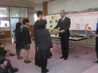 5,6年生が入賞しましたので、代表で受け取りました。