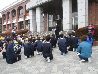 今日は、予告なしで休憩時間に火災が起きたという想定で、避難訓練を行いました。