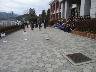 5年生は初めての消火訓練でした。実際にやってみると、やはり難しいと思うこともあったようです。