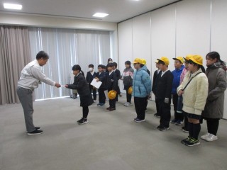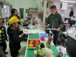 4年生は、竹炭販売の売り上げから一部を役場に寄附させていただきました。また、竹炭や有田城跡などを紹介するポスターをもって、道の駅やまちづくりセンターを訪問しました。