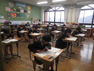 6年生は1・2時間目に国語と算数の調査問題に挑戦しました。